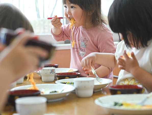 基本的にアレルゲンを含む食材を除く「除去食」で対応しておりますが、アレルギーが多岐にわたる場合など、対応方法をご相談させていただく場合もございます。なお、医師の診断書をもっての除去対応となりますので、入園時にお申し出ください。
