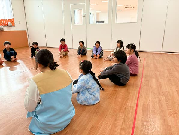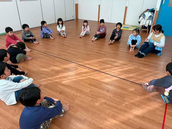 みんなで円になり、お友達の話を聞いたり自分の気持ちを伝える大切な時間♪
