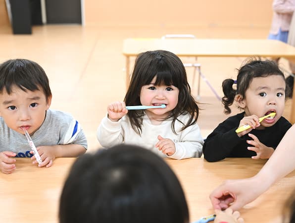 歯みがきの大切さを学ぶカリキュラムもあります!お兄さん・お姉さんの姿をじーっと興味深そうに見ている子も✨