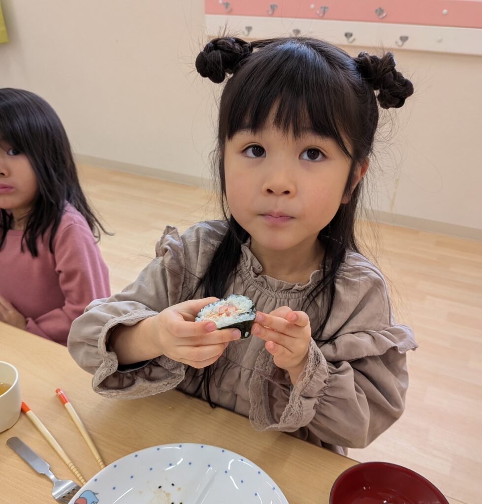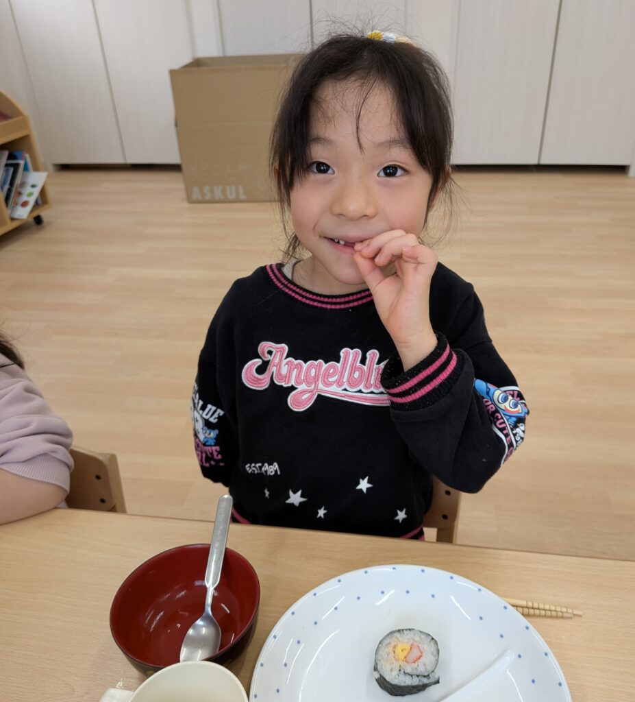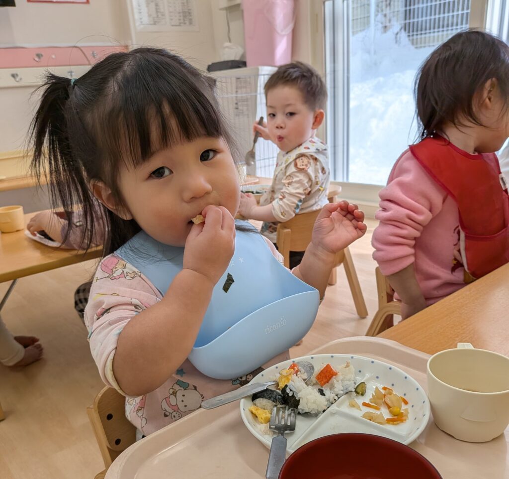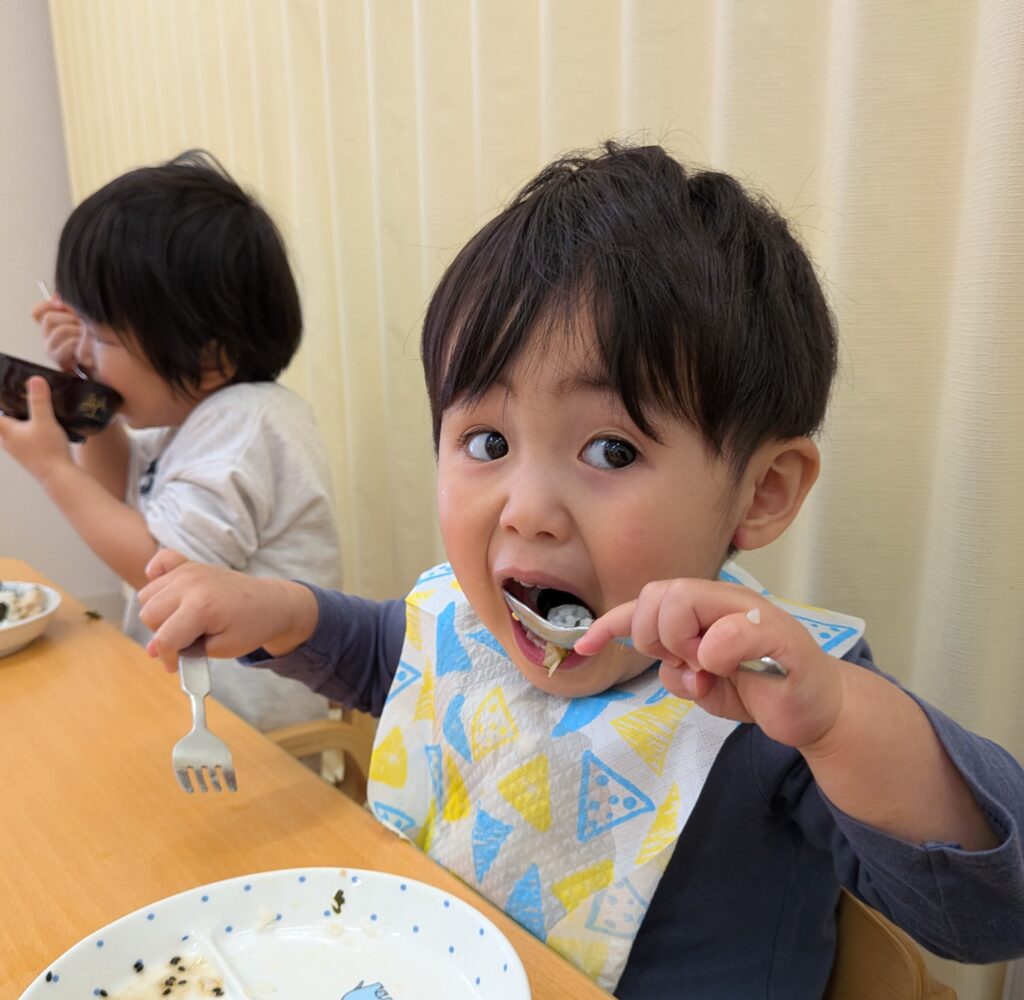 保育士から食べ方を教えてもらうと静かに食べる姿が可愛い子ども達でした😍