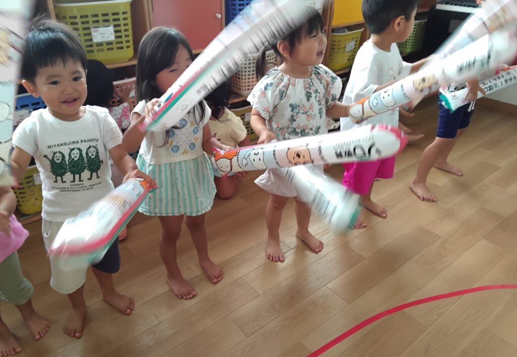 音楽が止まっても名残惜しいのか、まだ投げ続ける子も・・・💦(笑)