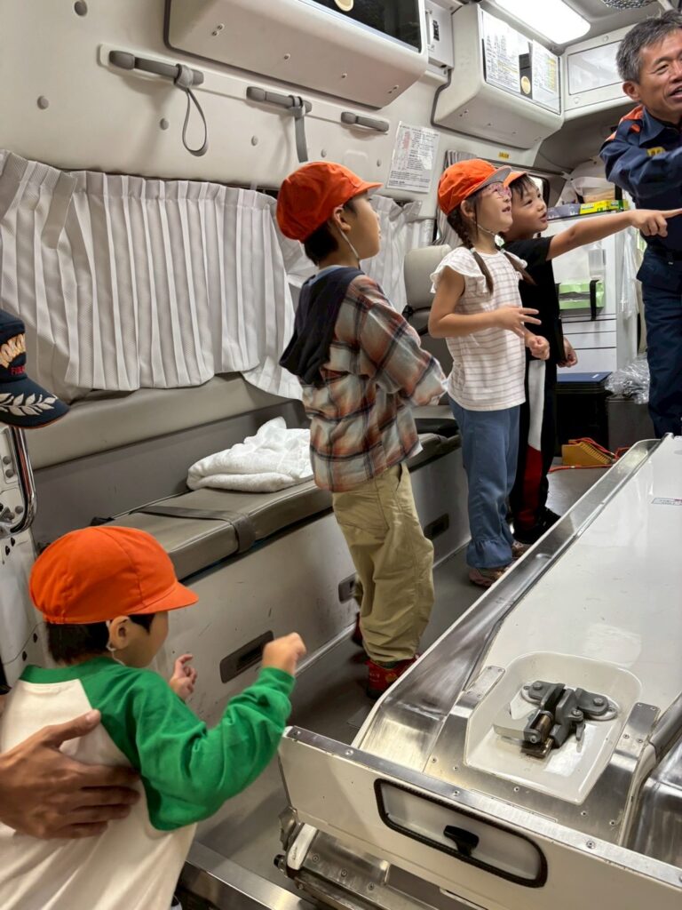 たまたま救急車の出動を見ることができて、「音大きかった!」「すごい!」と目をキラキラ輝かせていたこども達でした🤩