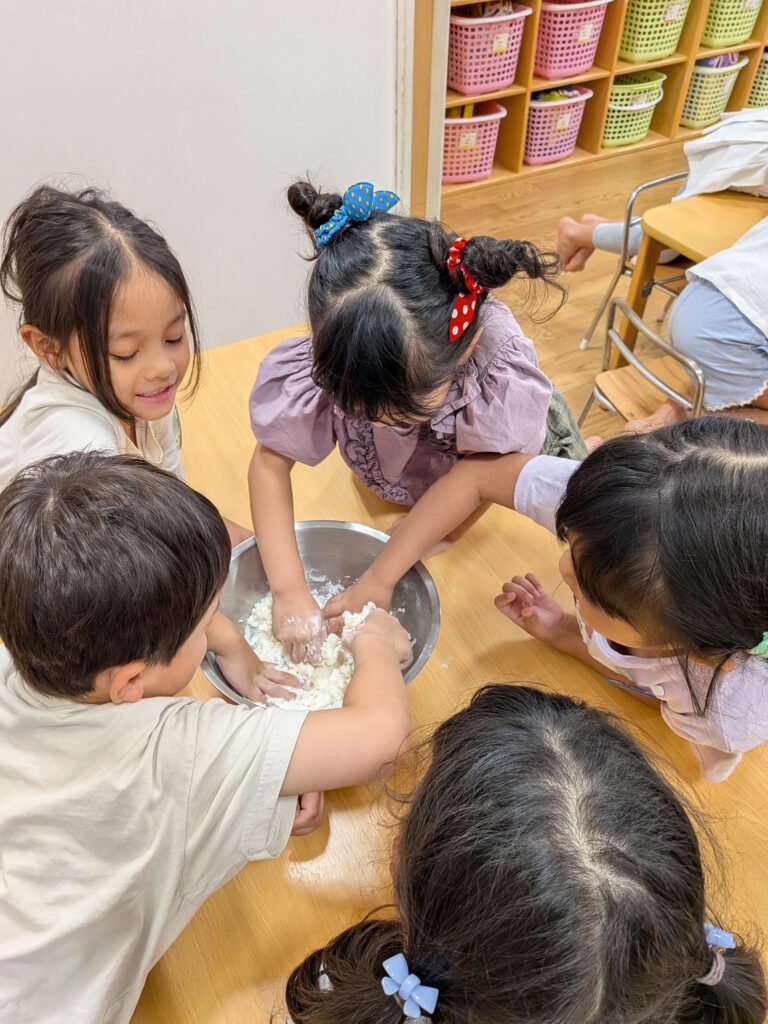 2.3.4.5歳児さんはお団子粉とお豆腐を使って本物のお団子作り!