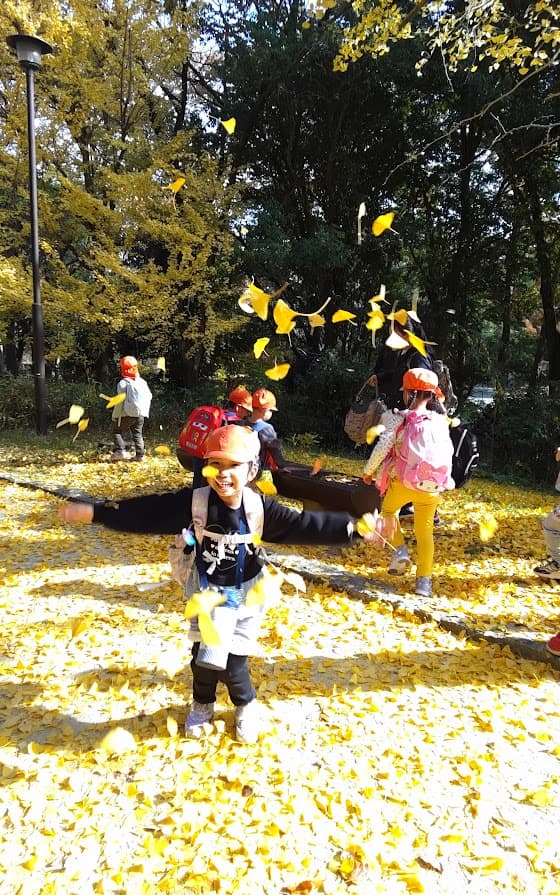 ヒラヒラ舞い落ちる葉を両手でキャッチしようと右へ左へふらふら😆🍂✨