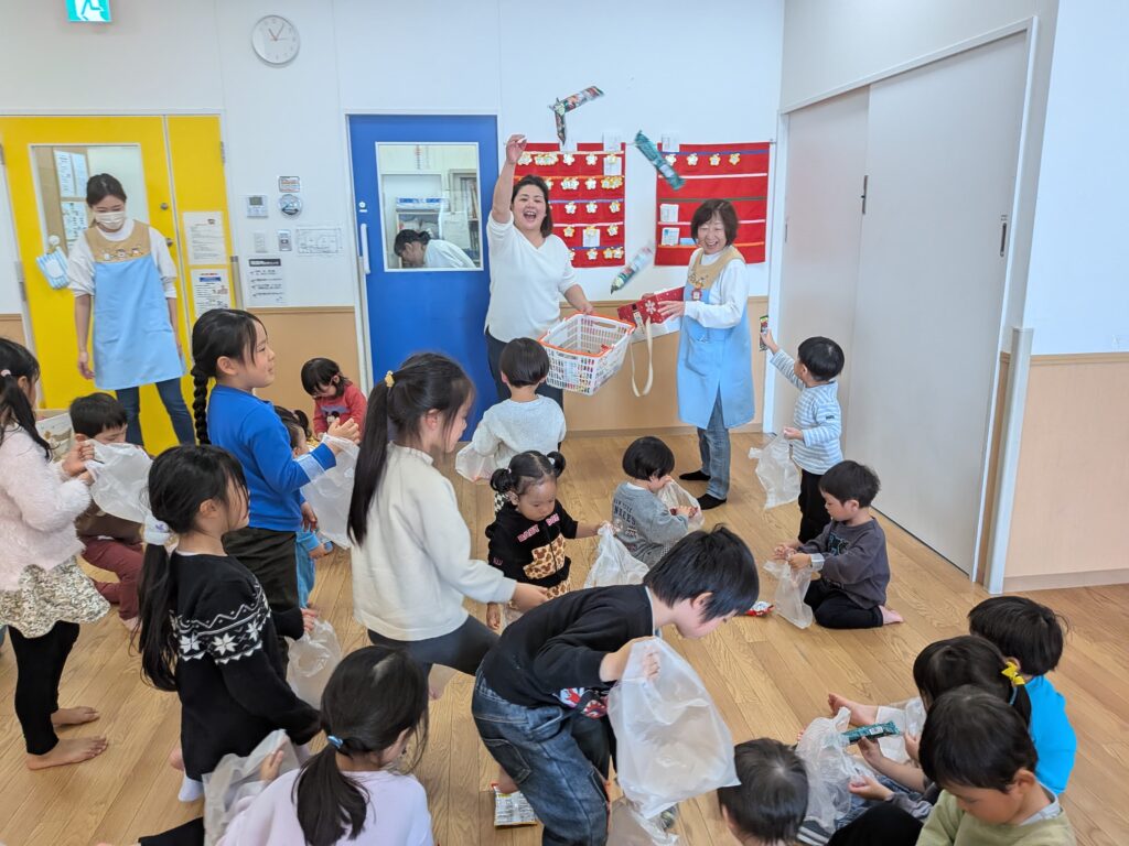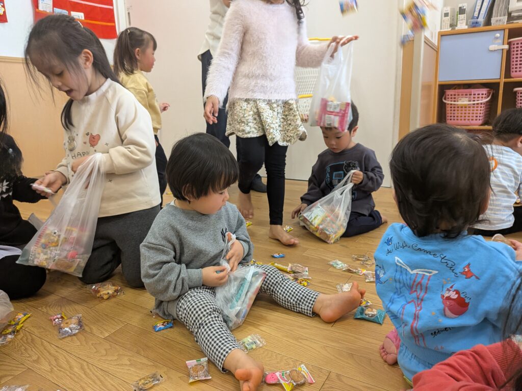 とりあえず目の前のお菓子を一生懸命袋に入れる0.1.2歳児さん😊🎵