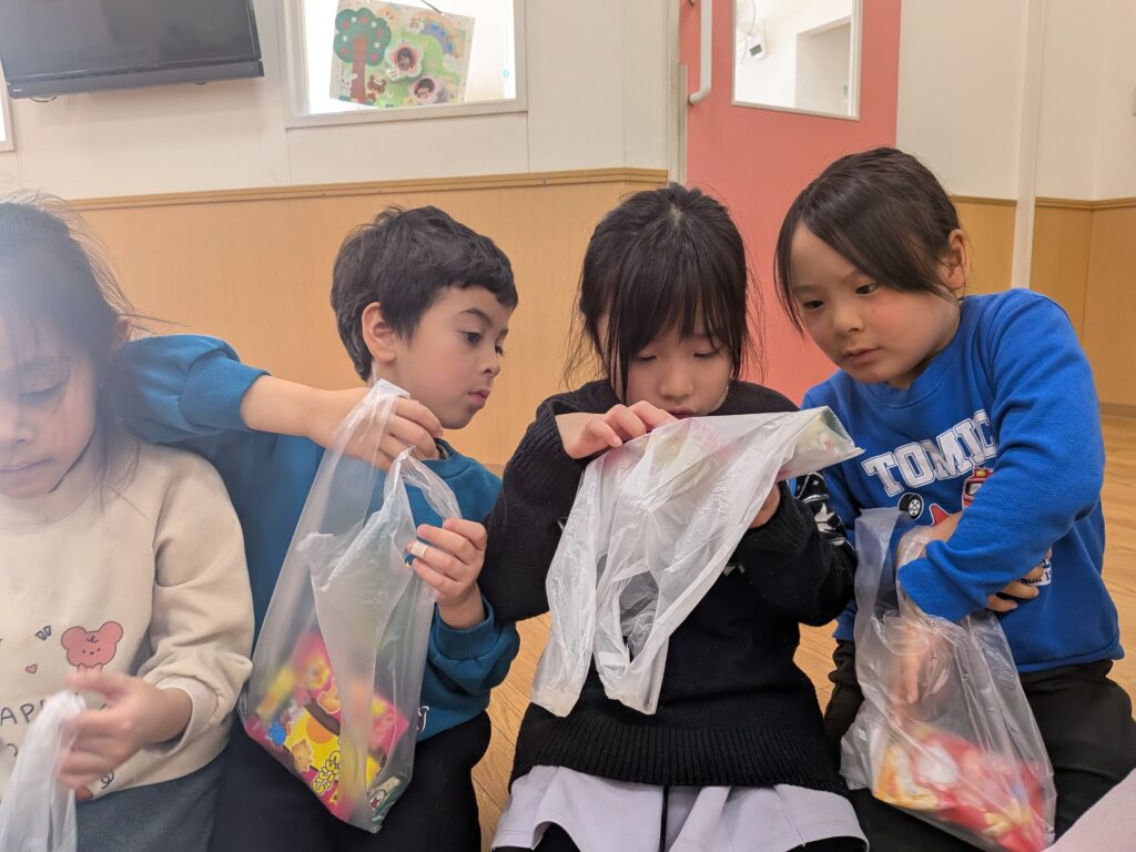 とりあえず目の前のお菓子を一生懸命袋に入れる0.1.2歳児さん😊🎵