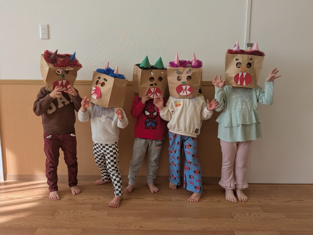 始めに自分で作ったオニさんに変身してみんなの前に登場です👹✨