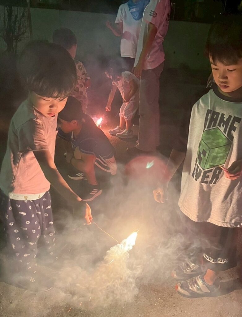パチパチと音を立て、キラキラ輝く花火はお泊りDAYの締めにぴったりですね🎆✨️