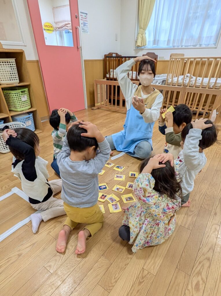 少しずつルールを理解して楽しんでいる姿やカルタが読まれるまできちんと待っている姿、そしてお友達と手が重なったら譲り合う姿は、とてもかっこよく素敵でした😊🩷