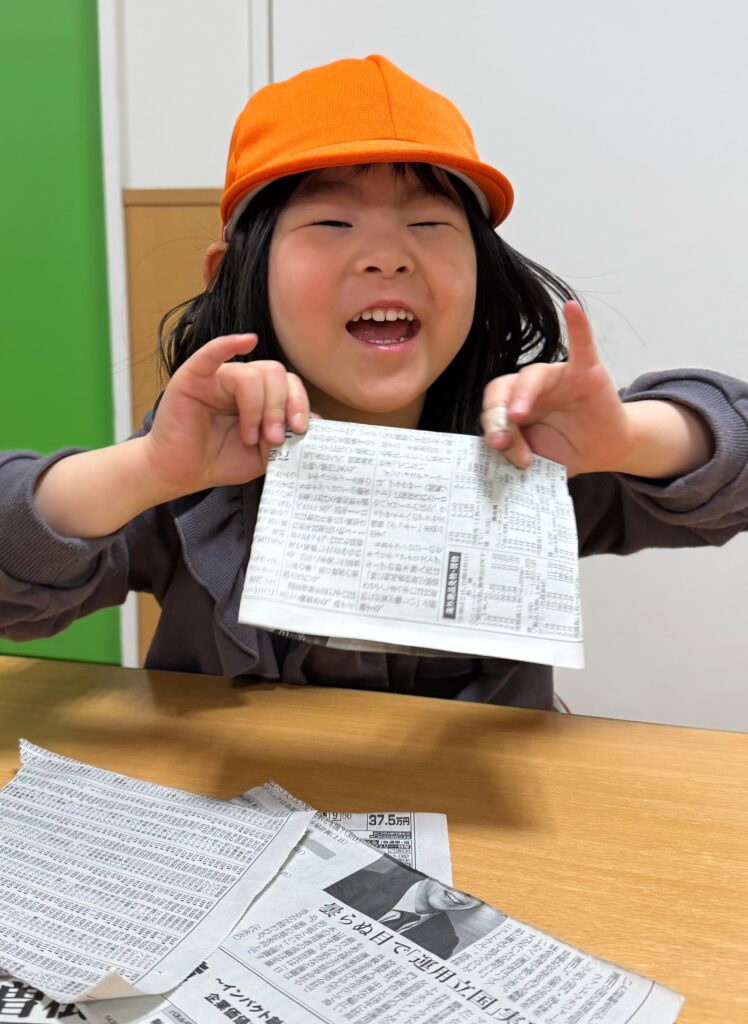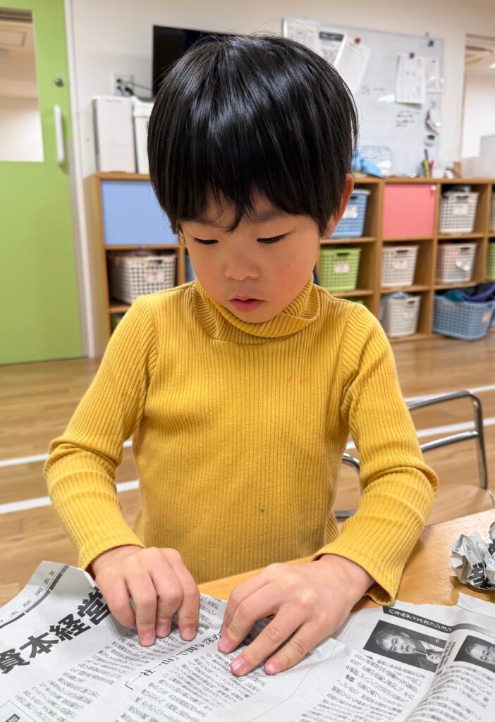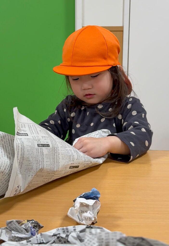 新聞紙をくるくる丸めて豆作り🫘