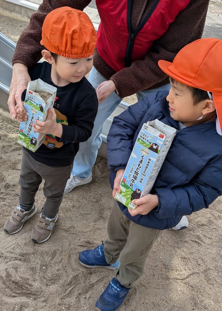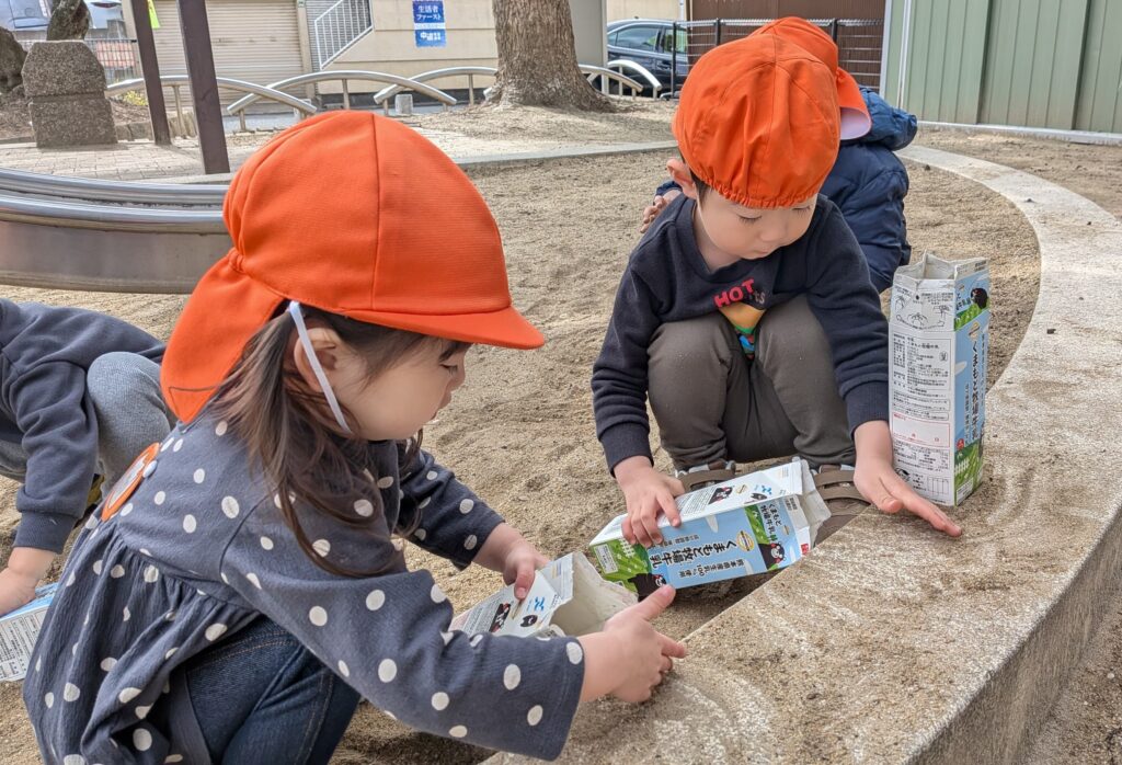 また、おさんぽの時間は、“牛乳パックで何をしようかな?”