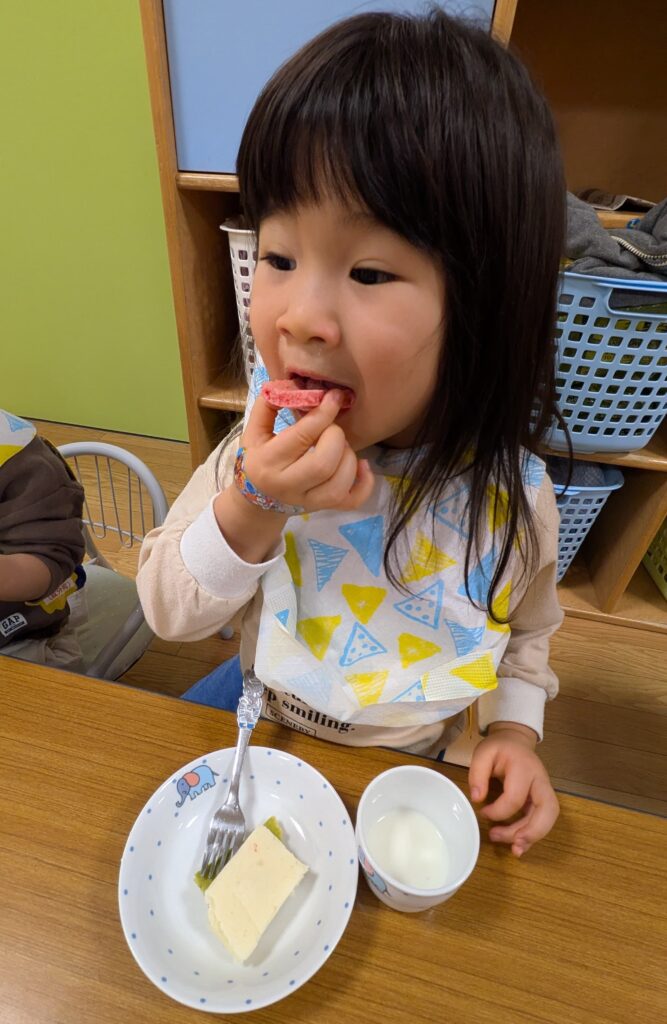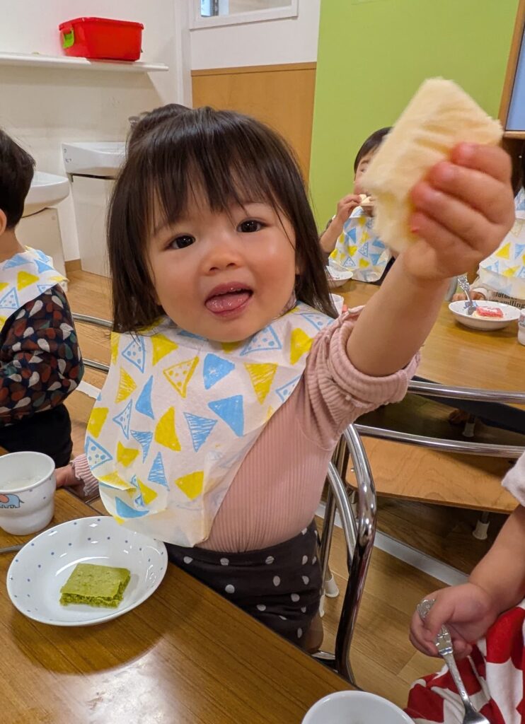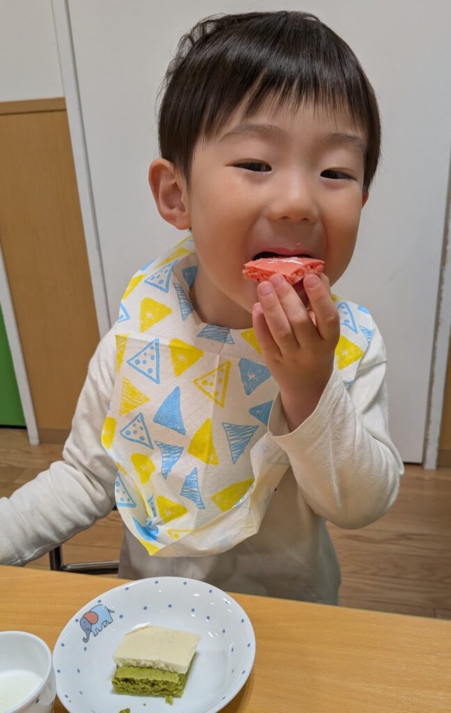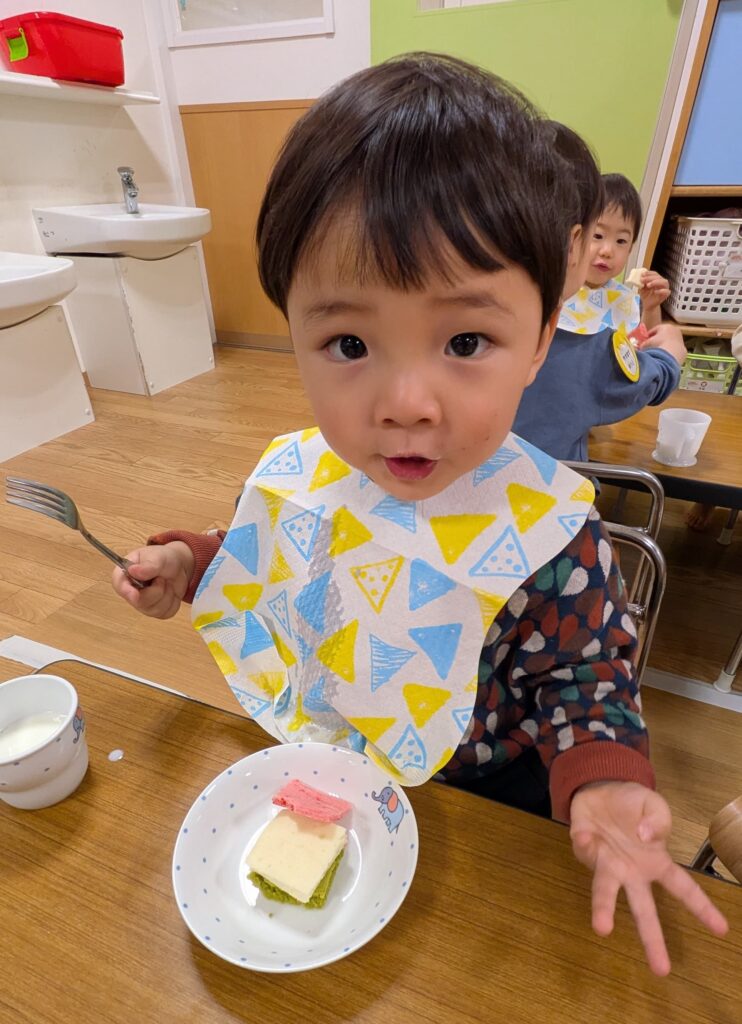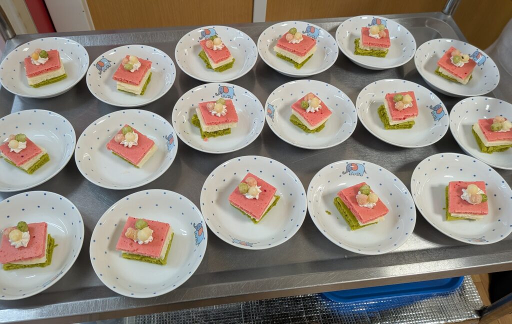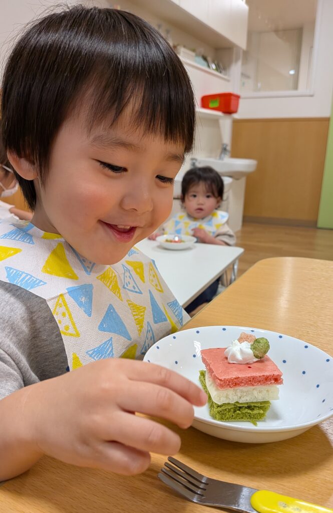 子どもたちのお楽しみ、今日のスペシャルおやつは…ひしもちケーキ✨️