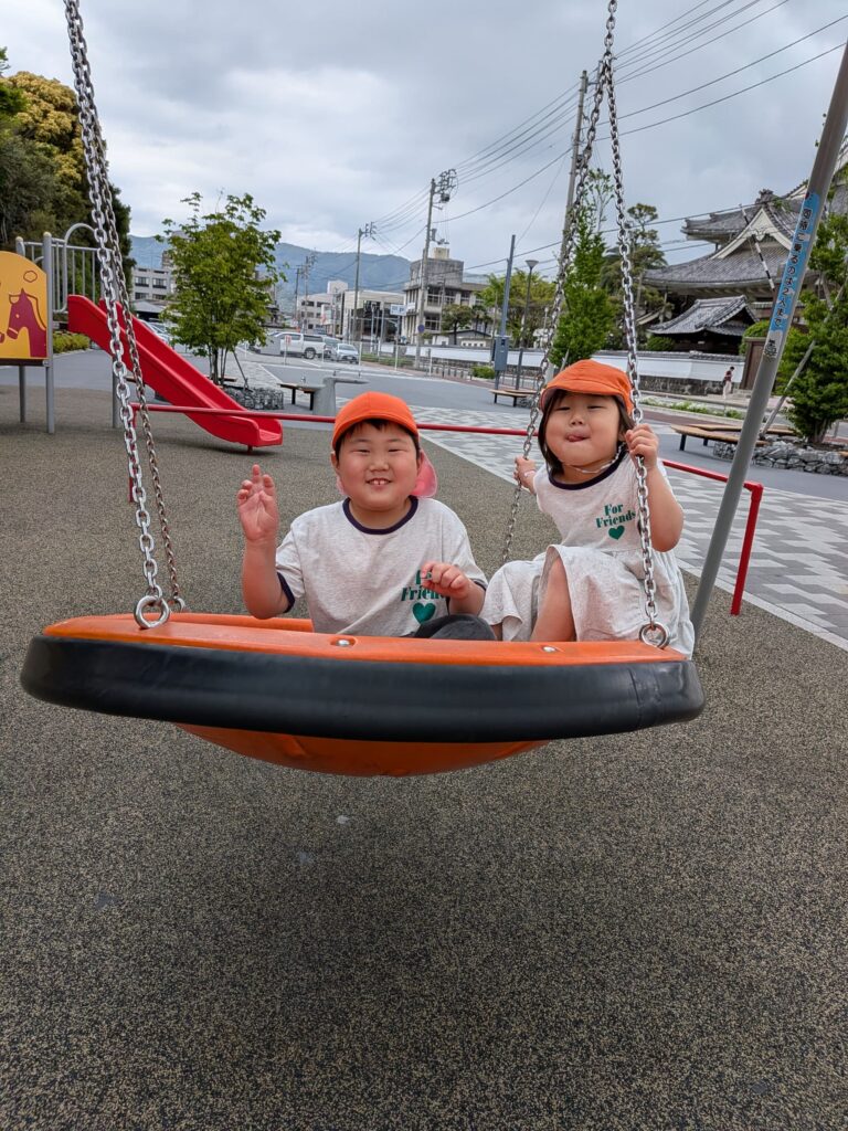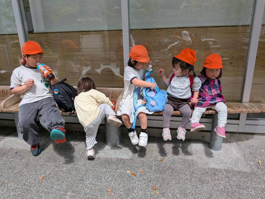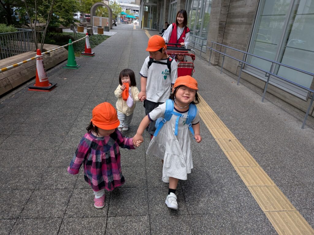 帰る時間になるとたくさん交流してさらに仲の深まった子ども達は先生ではなく、お友だちと手を繋ぎたい!と手を差し出しあい、「そんなに繋げないよ🤣」と困惑する姿もありました。生憎のお天気でしたが子ども達は2カ所も遊びにいくことができ、満足そう!!そんな表情が見られて私たちも嬉しかったです♪