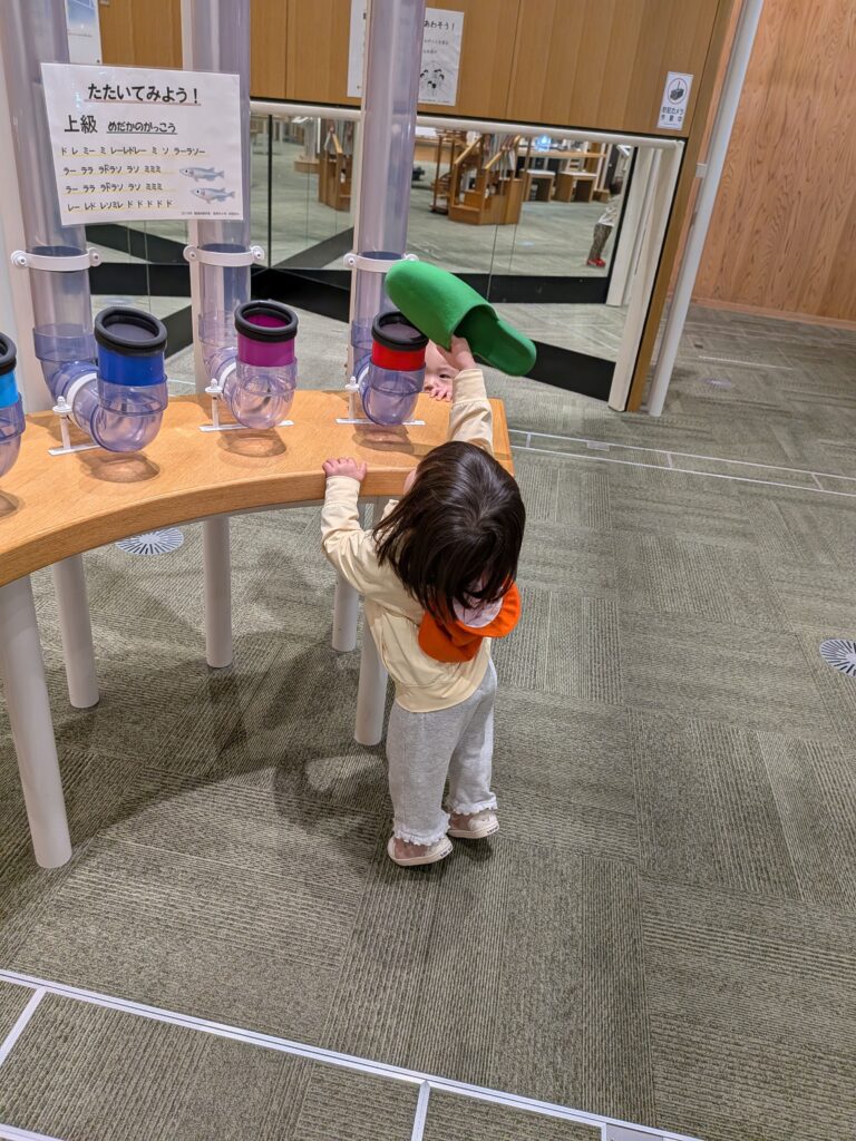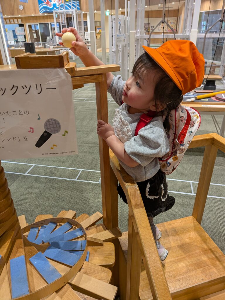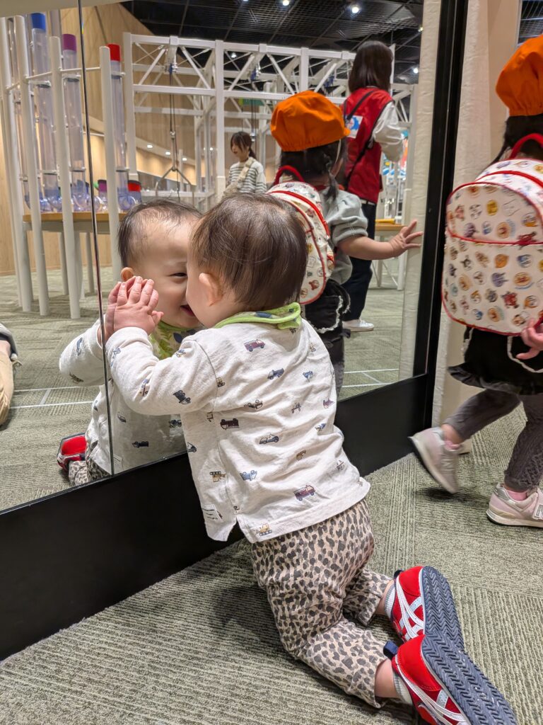 科学館では鏡にうつる自分と見つめあったり、ボールを転がすと音が鳴ったりと不思議がいっぱい!興味津々にいろんな物に触れて楽しんでいました。