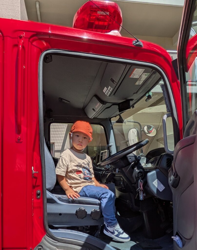そして…特別に消防車の運転席に座らせてもらって嬉しそうな子もいれば、緊張しちゃった子も…(笑)