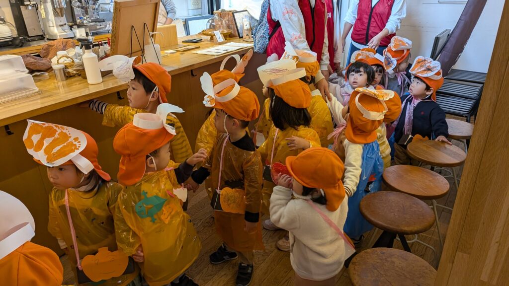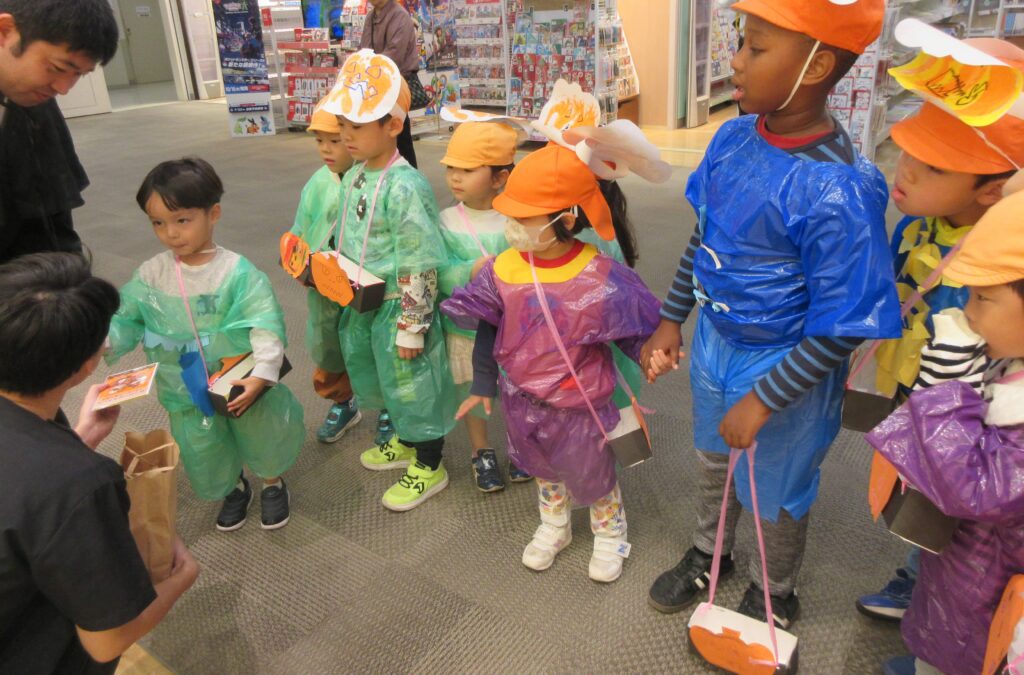 事前に4,5歳児さんに作ってもらっていたクッキー型の紙粘土玩具を店員さんから貰い、ホンモノのクッキーと間違えてしまい、「食べたい!」と喜ぶ子もいました🍪