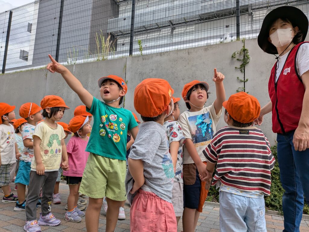 「トンボだ~!」「あそこにもいるよ!」と指をさしながら、夢中で見上げていました。