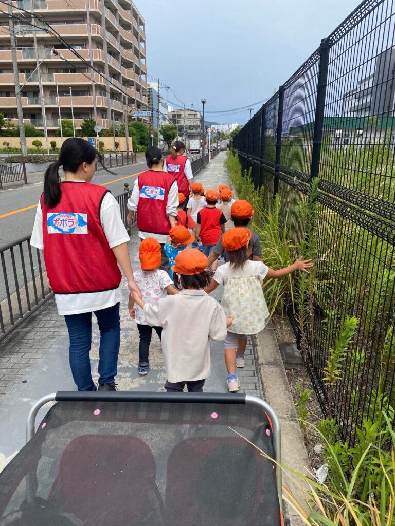 たくさんあそんだ帰り道は、ちょっぴり疲れていたけれど、しっかり列になって歩くことが出来ました。