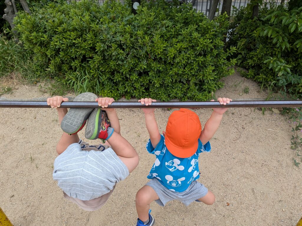 「見てて!」と張り切って挑戦する姿や、お友達と並んでぶら下がってニコニコと顔を見合わせている姿も見られました。