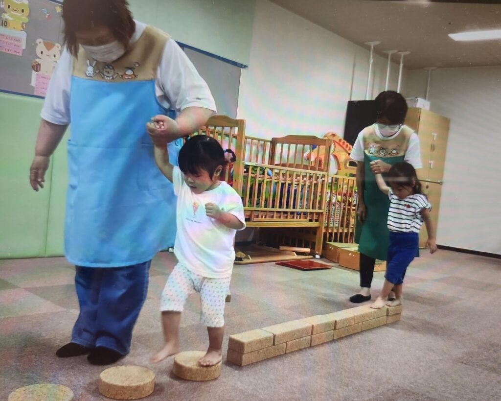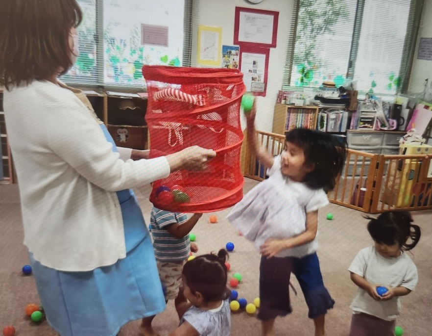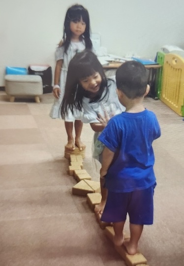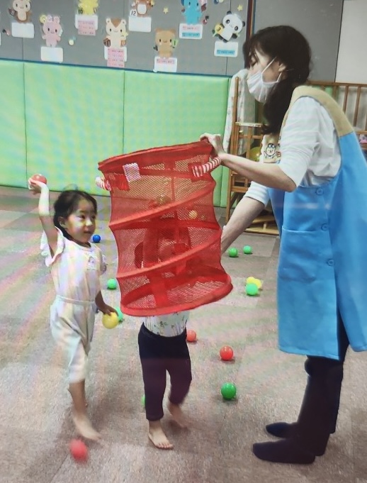 週末だけ登園する大きい子も加わって、みんなワーワーキャーキャーと大はしゃぎしながら、楽しく練習できました。大きい子と小さい子が関わりながら遊べるのは、縦割り保育ならではですね!