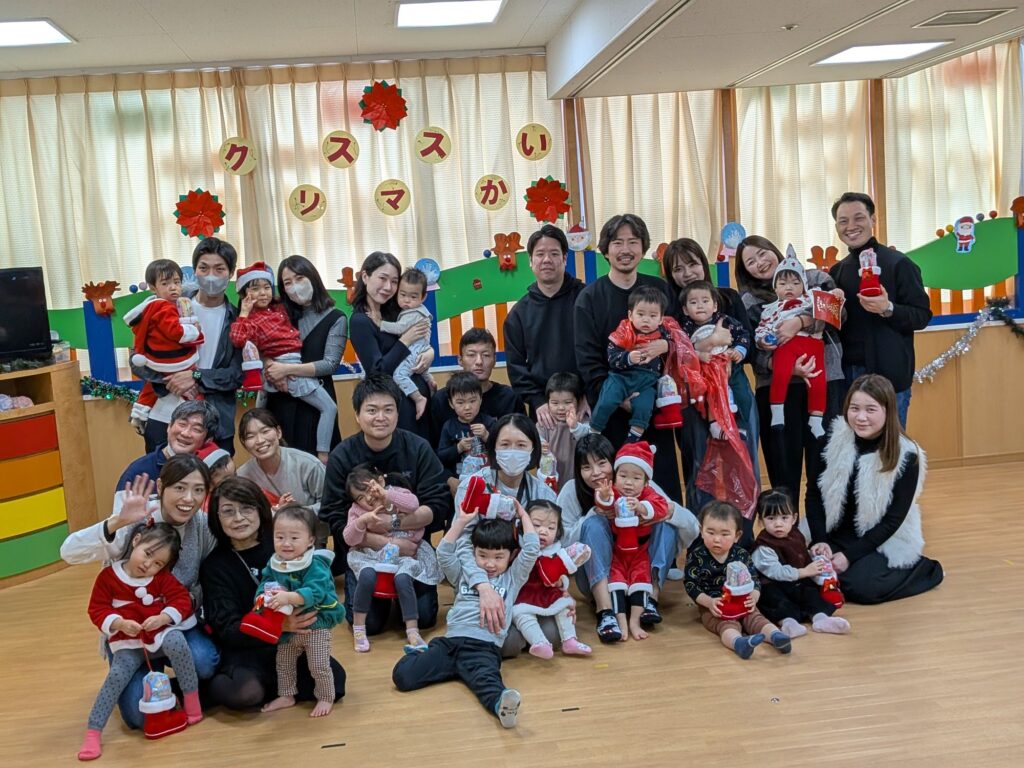 サンタさんが入ってくると、人見知りで大泣きの子ども達でしたが