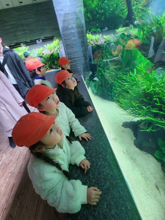 「わあ~!!😊」と走っていき水槽にピタッとくっついて見ていましたよ👀