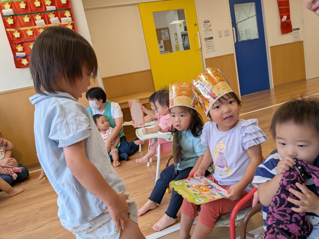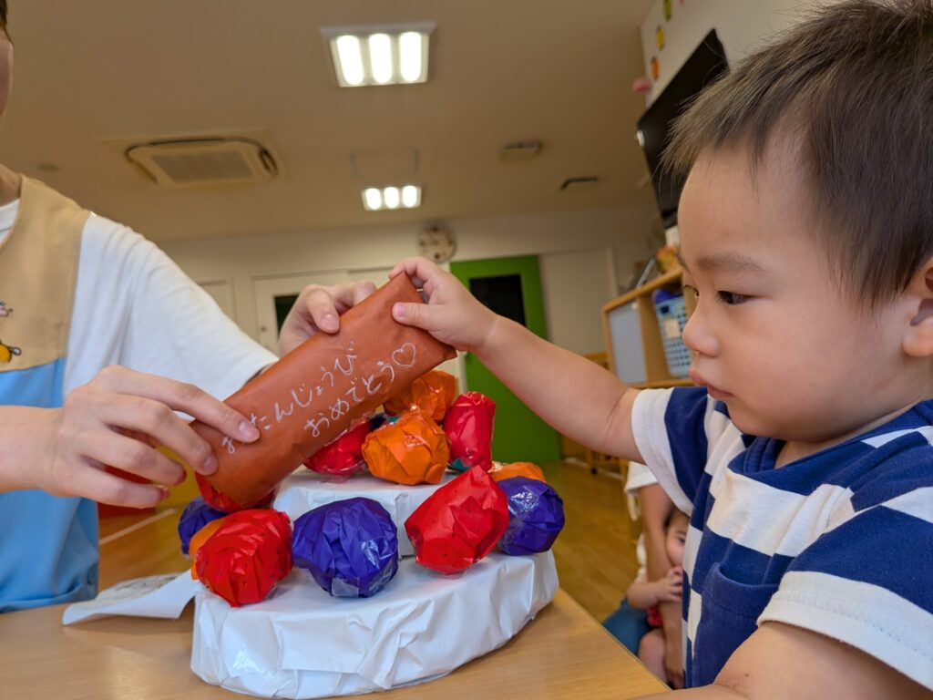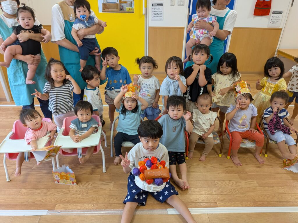 最後は全員で「ハッピーバースデートゥーユー♪」誕生会の歌を歌いお祝いができました。