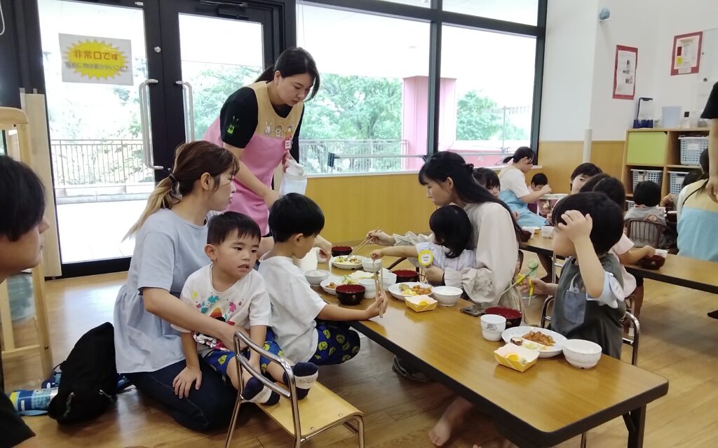 給食の時間にお父さんお母さんがいる…!? と少しソワソワしていた子どもたち!