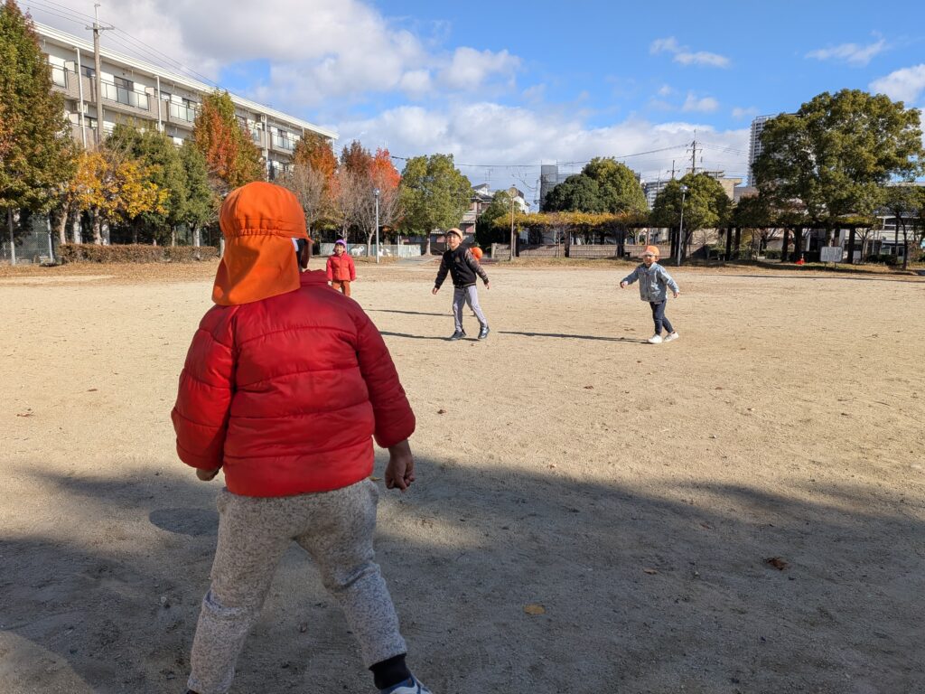 初めて会うお友だちなので保育園の紹介と「よろしくお願いします」と挨拶をしてから遊び始めました🎵