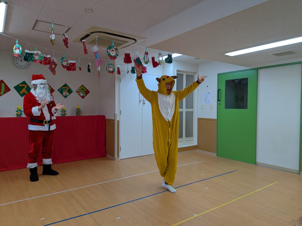 トナカイはみんなの大好きなカリスマックスを踊ってくれて、サンタさんは花の手品を見せてくれました!