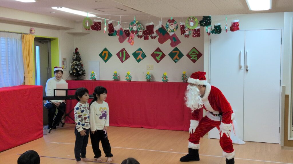 乳児(0~2歳)、幼児(3~5歳)の二部に分かれてクリスマス会をしました🎄