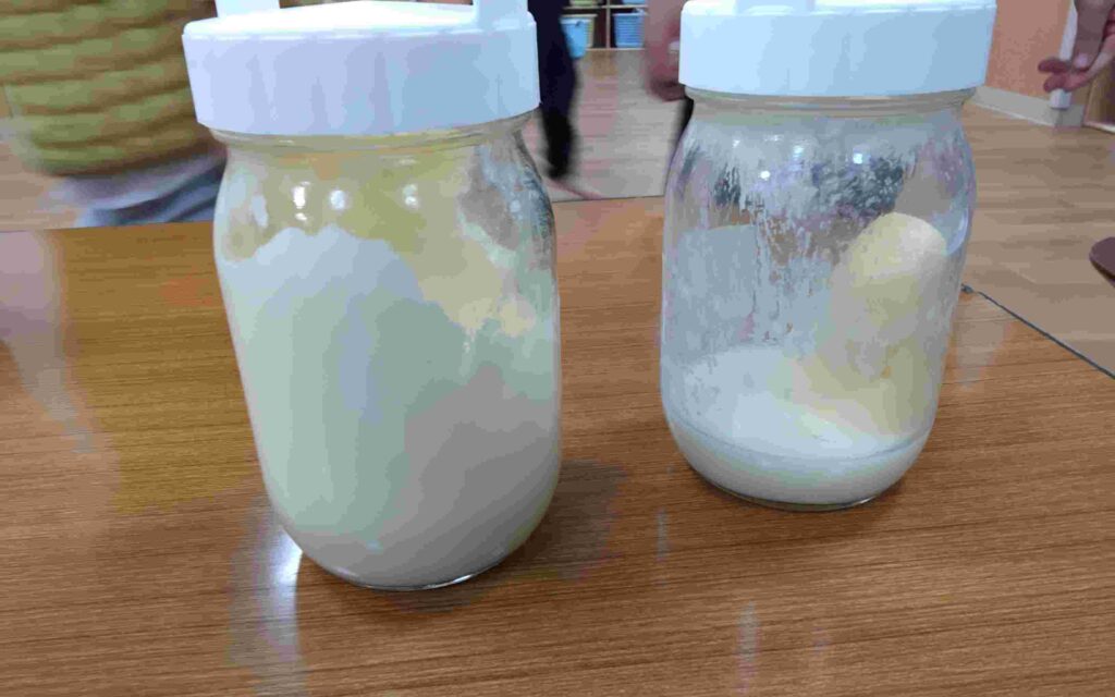 1月18日のファミリークッキングでは、バターを作りました。