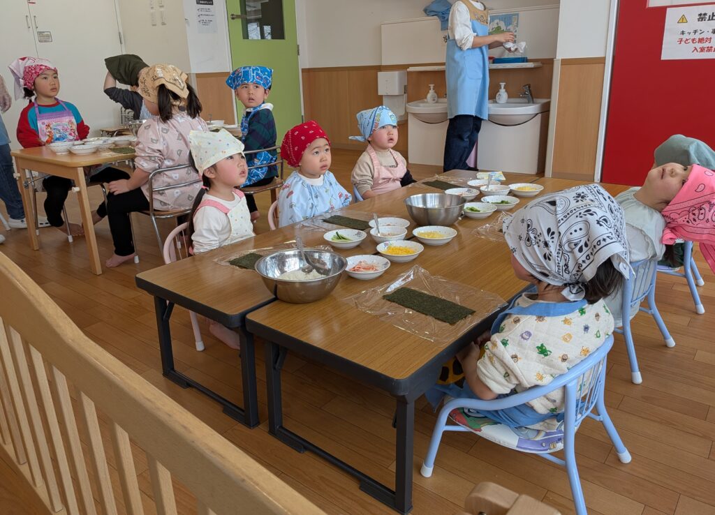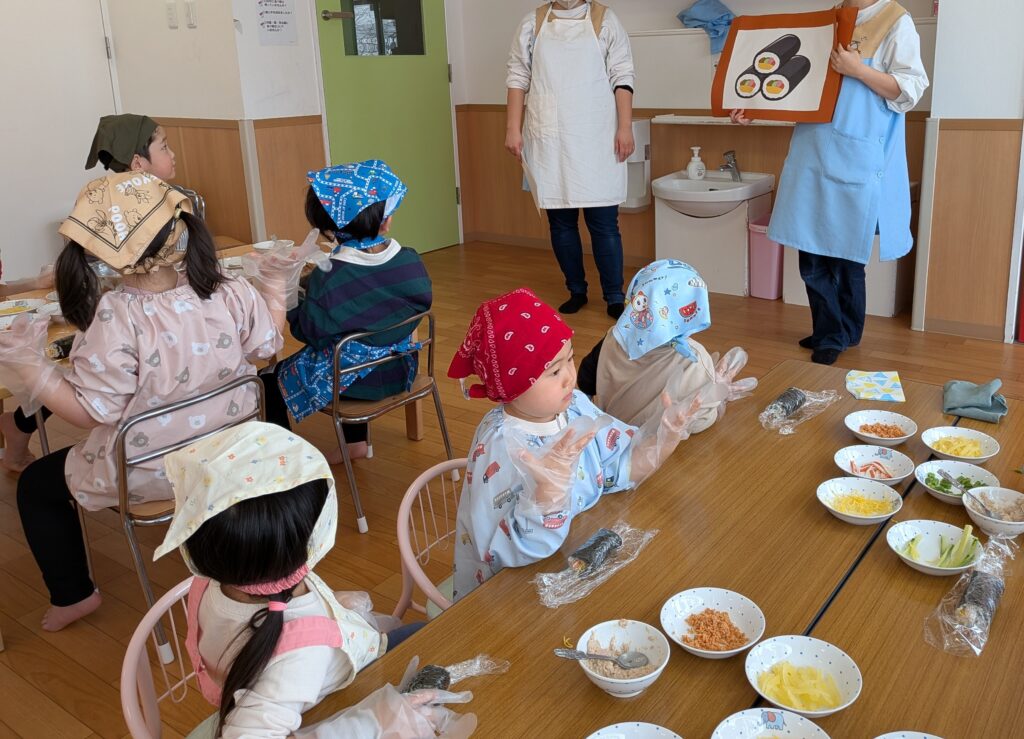 おに退治の後は、用意した7つの具材を入れオリジナルの恵方巻作り✨