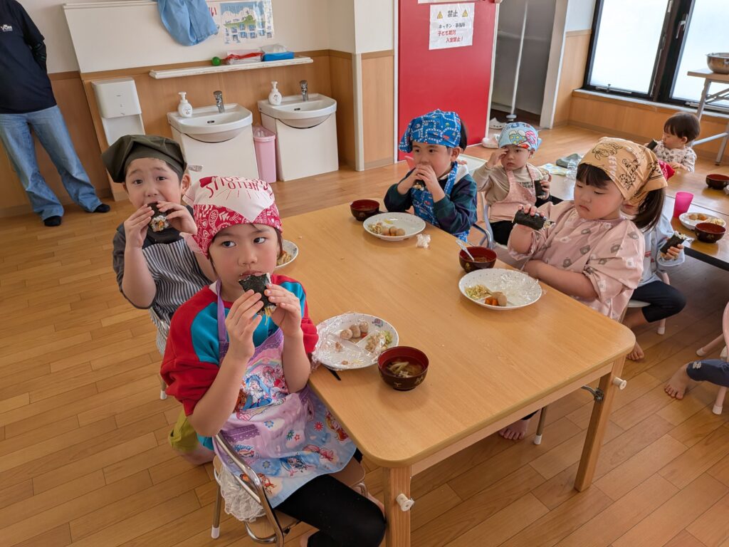 自分たちで作ったオリジナルの恵方巻を「美味しいー!」と、