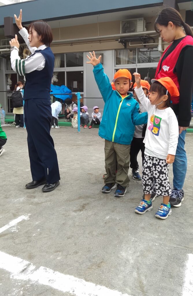 最初は他の保育園のお友だちや交通課の方に人見知りをしていましたが、