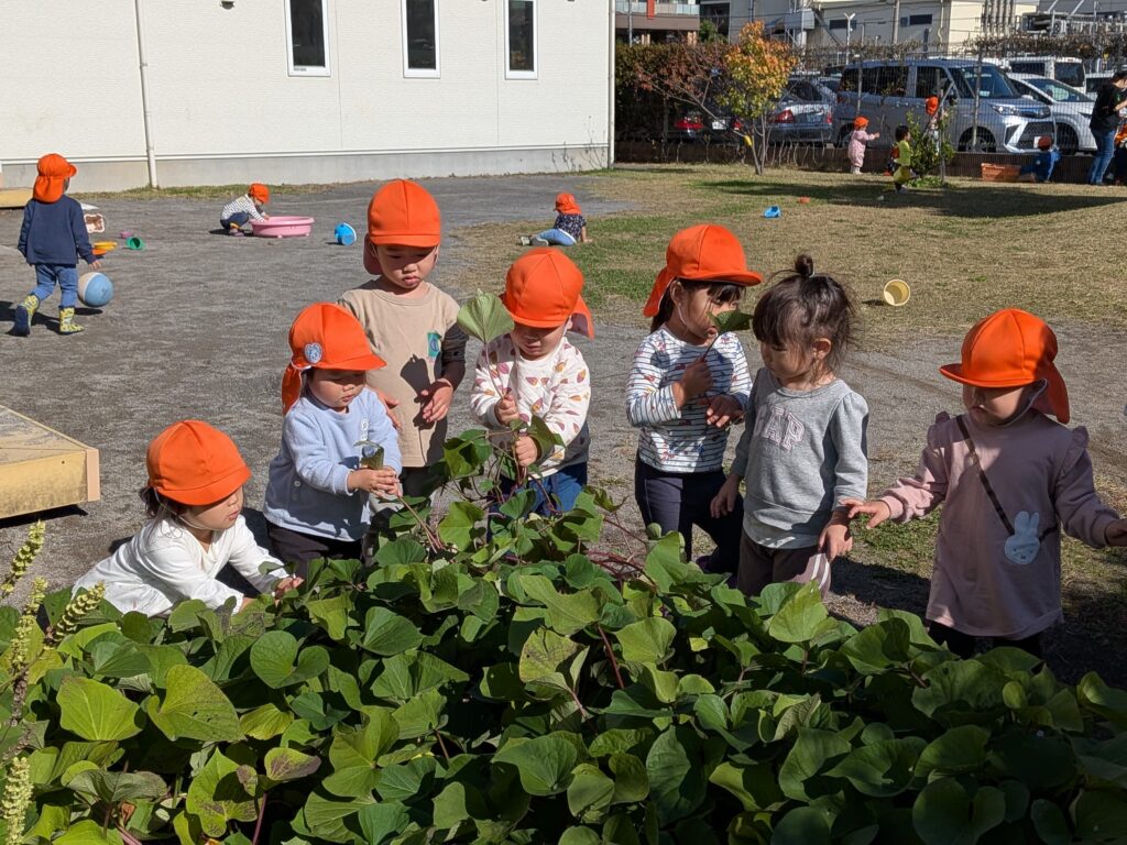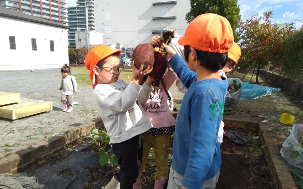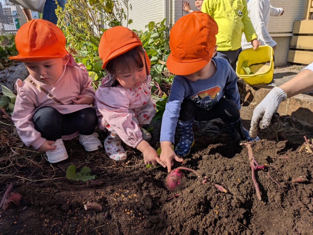 園庭の花壇に植えていたさつまいもを収穫しました。