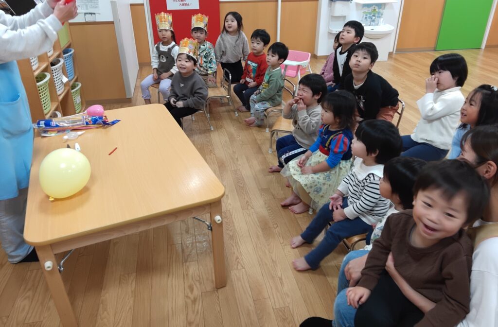 どんどん膨らむ風船に怖がってしまうおともだちや