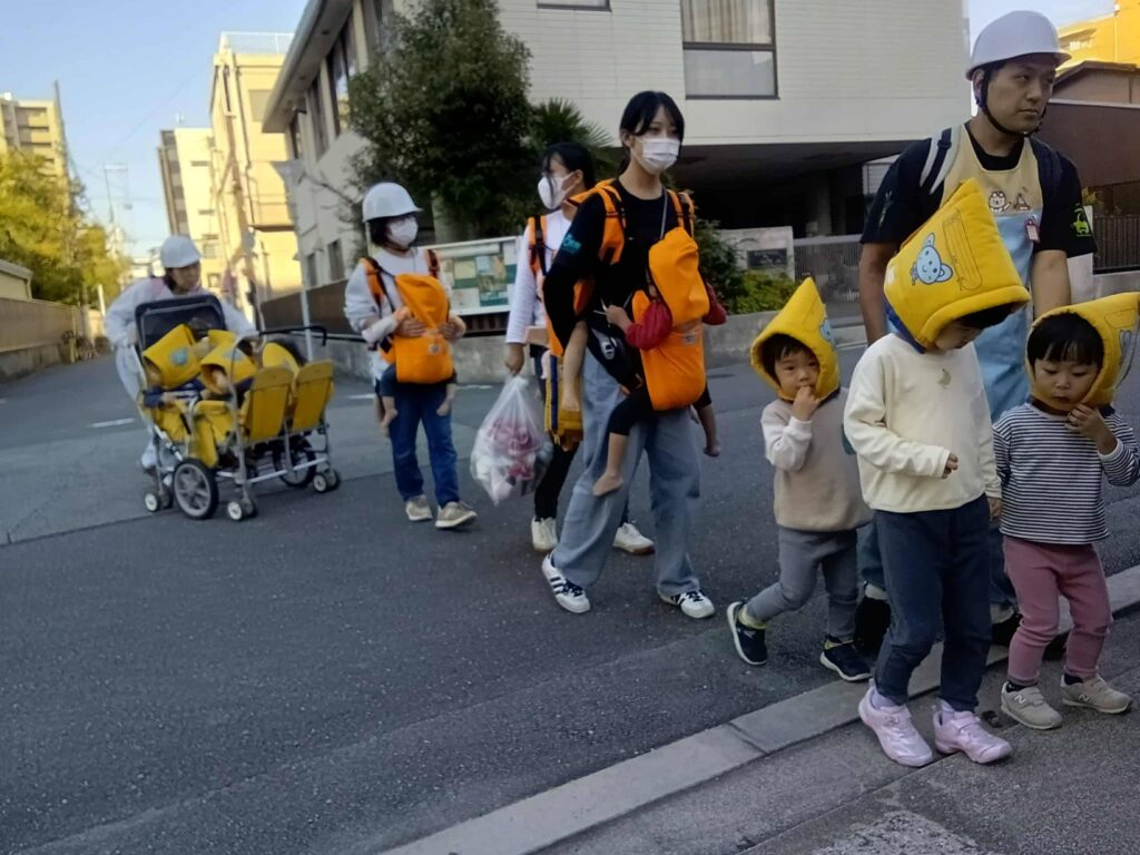 園では、毎月避難訓練を子どもたちも参加して行っているので、避難訓練に関しては慣れている子どもたち!