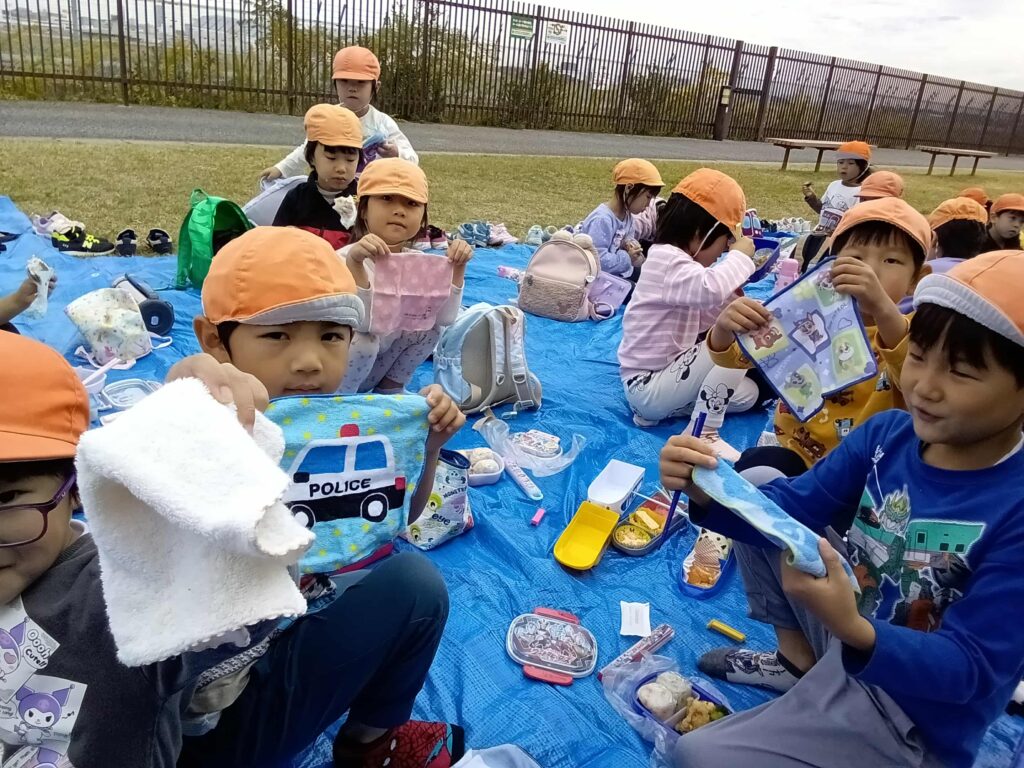 お弁当の途中には、ハンカチ自慢タイムがスタートしていました✨