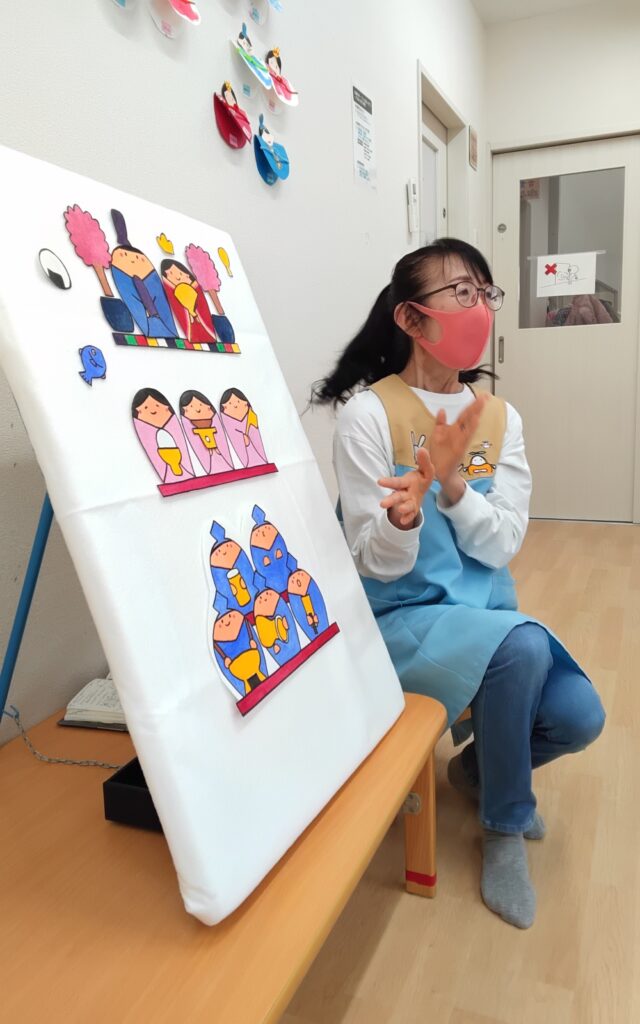 園児さんお楽しみのパーティーでは、先生お手製のパネルシアターでお歌も交えながらお雛様の種類や、お名前などをお勉強しました♥️