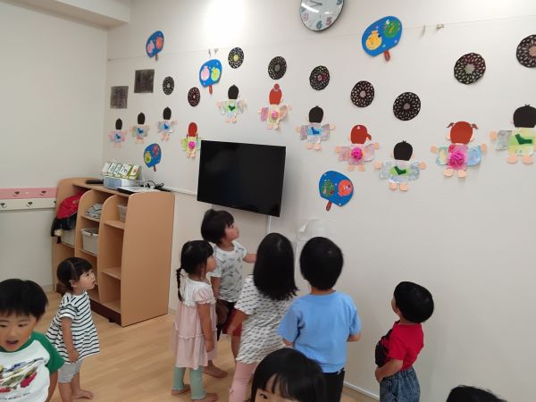 前日準備で貼りだされた壁面装飾に自分の作品をみつけて