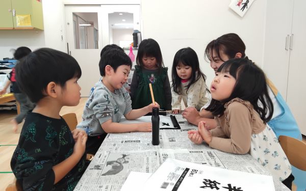 年長さんは書初めにも挑戦!