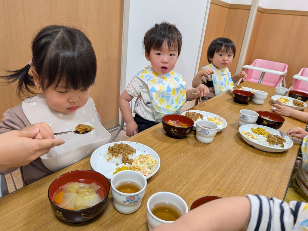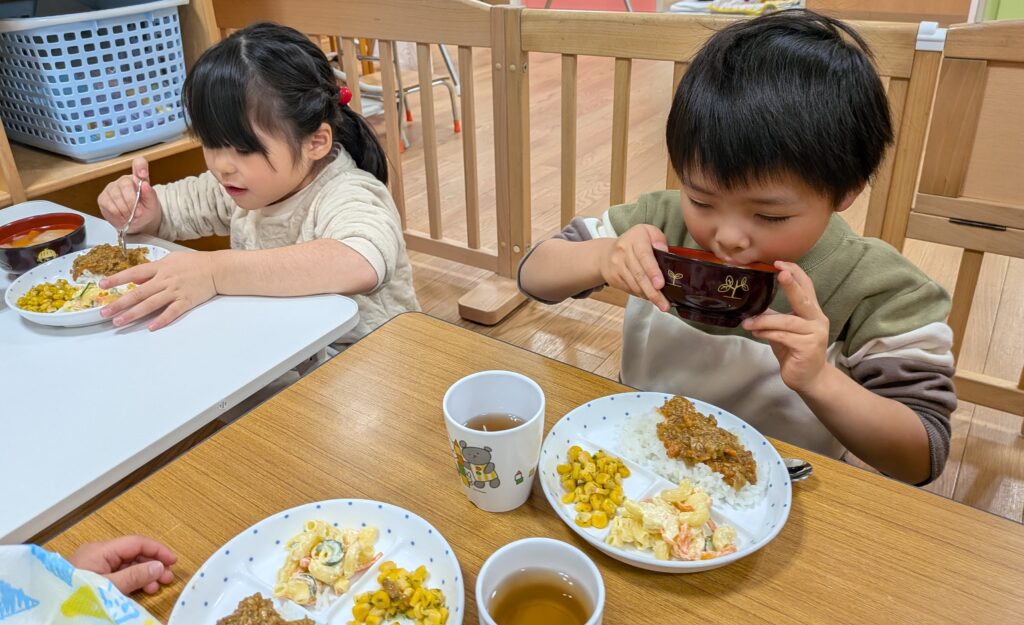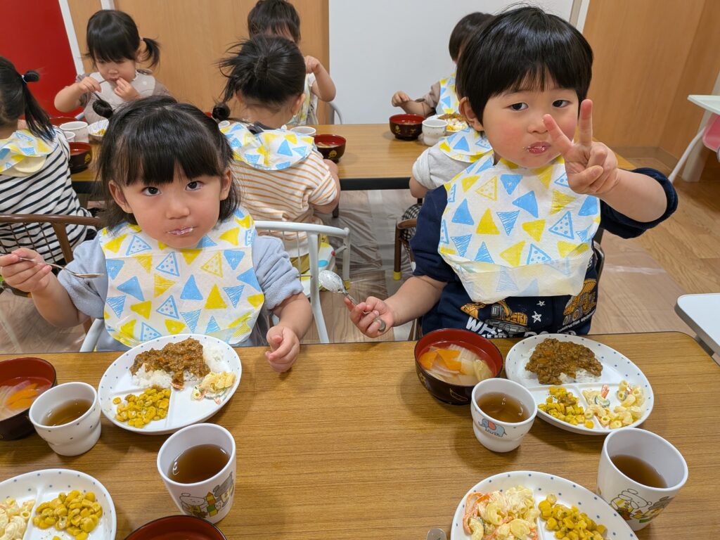 子どもたちは「おいしい、おいしい」と言いながら友だち同士で楽しく食べていましたよ~🤭💕