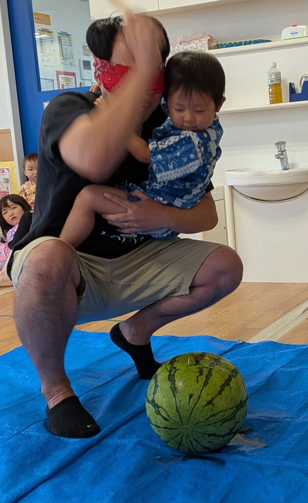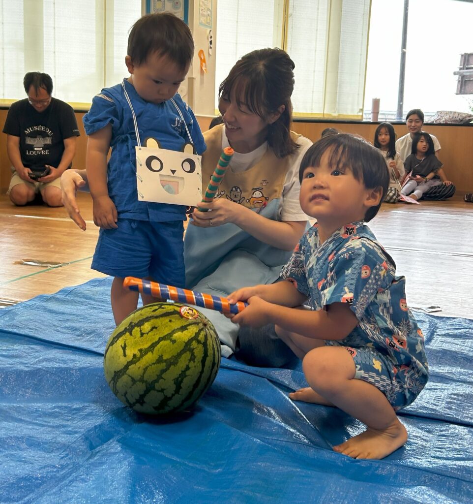 親子製作の後はなんと、、、!!『スイカ割り』をおこないました!😲