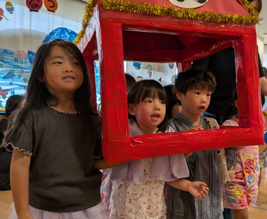 0〜4歳までの園児たちはお神輿を一生懸命「よいっしょ!よいっしょ!」と声かけをしながら担いでくれました!!