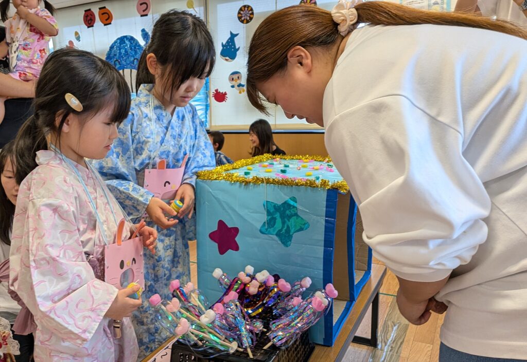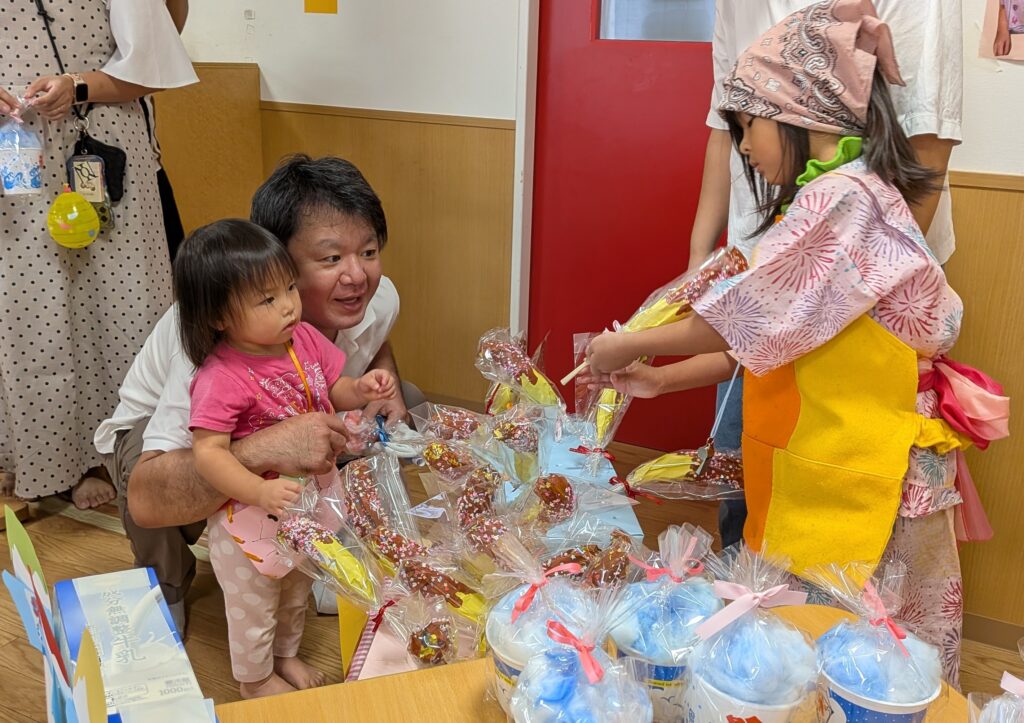 みんなで作った食べ物の屋台や、コイン落とし、千本釣り、ヨーヨー釣りなど沢山のブースを自分たちで作ったお財布を首に下げながら巡りました✨
