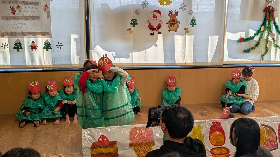 「サンタさん来るかな?」「プレゼントある?」「発表楽しみだな」と期待に胸を膨らませていました。