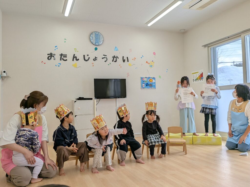 司会の2人のアナウンスで始まった2月生まれさんのお誕生日会。