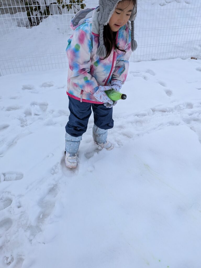 色水で雪に絵を描いたり、ゆきだるま⛄もがんばって作りました✌