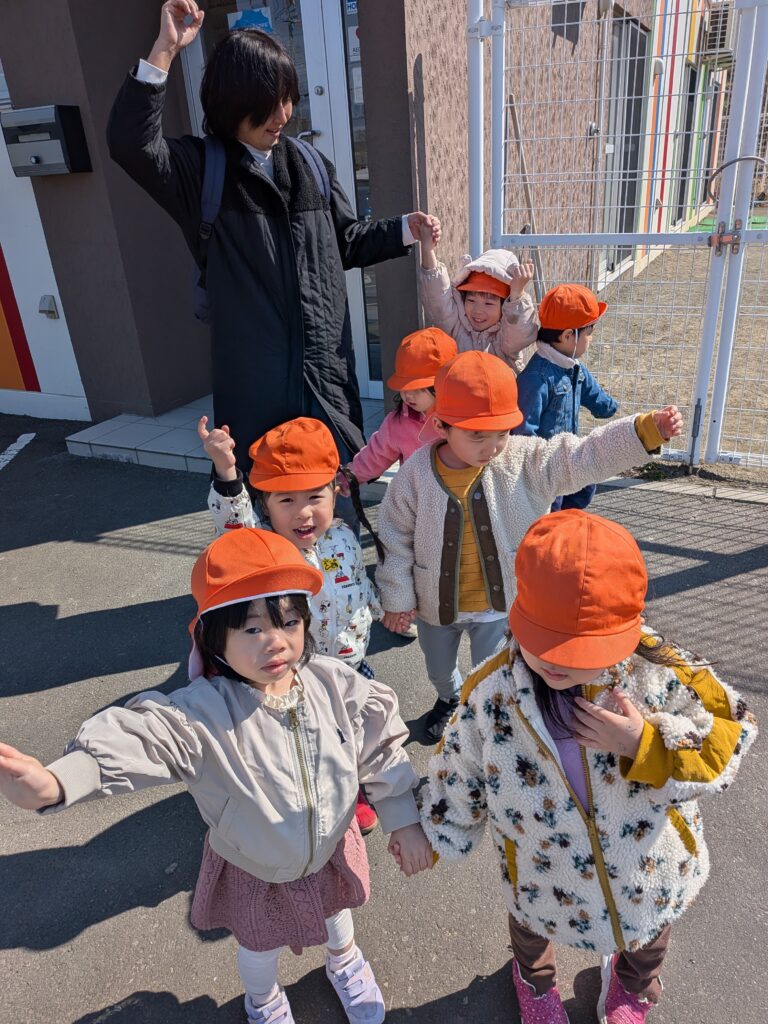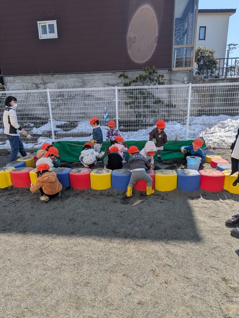 外での活動は、暖かくなってきたので、近くの公園に散策に出掛けたり、園庭では、冬には出来なかった砂場遊びも楽しんでいます!